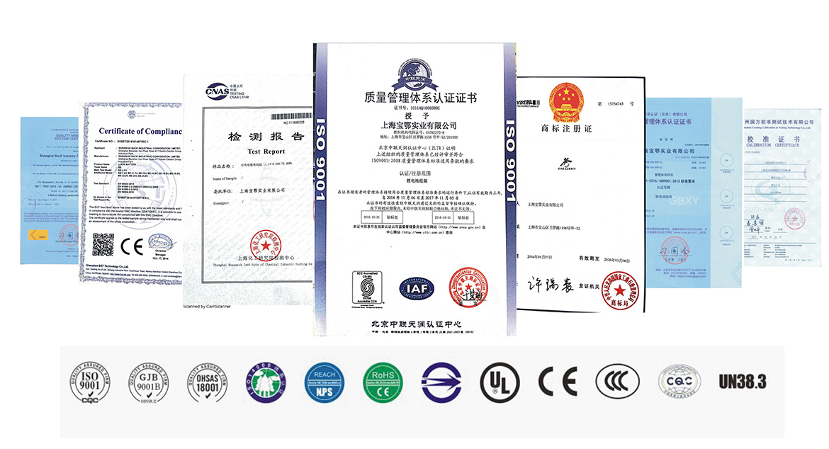 产品认证:ROHS、REACH、CB、UL、FCC、CE、CQC、UN38.3、CCC、BSMI、PSE、KC等