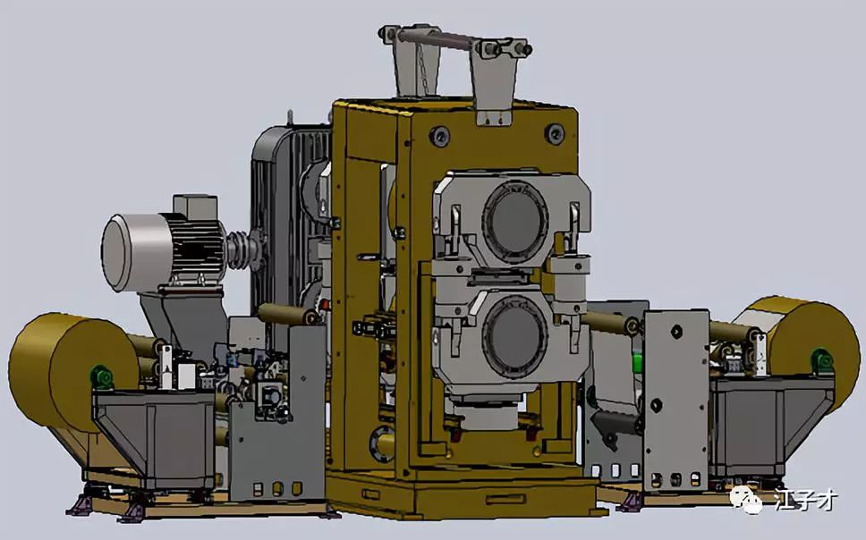 先来张图,如上图,这是一款时髦流行的辊压分切一体机图片,通过把涂布后的极卷,运送到辊压机,经过双辊的压力,把极片压薄,控制在我们想要的厚度,达到增强剥离强度、减少离子传输距离的效果。