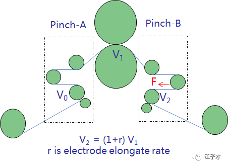 主要是为了消除打皱而提出的一种工艺,通过差速拉伸,使得涂覆区和极耳区长度一致,消除打皱。在辊压的过程中,极耳区比较薄,双面涂布下是无法接触到轧辊,涂覆区受到辊的压力,两边张力不一致,一般来讲,辊径越小,极片延展越严重,褶皱越厉害。