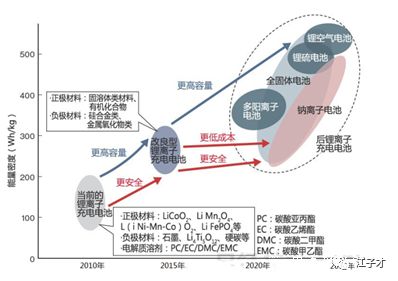 2020-2025年,以全固态锂离子电池为主,金属锂负极或硅碳负极。能量密度400wh/kg,同时开发钠离子电池,钠比锂更加廉价,但比锂离子大,且存在液态记忆。