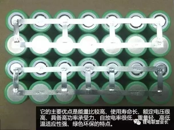 它的主要优点是能量比较高、使用寿命长、额定电压高、具备高功率承受力、自放电率很低、重量轻、高低温适应性强、绿色环保的特点。它的最大使用的寿命在6年以上,它在使用中不产生任何的有害物质,并且不需要消耗水。在能量和重量上也遥遥领先于其他的电池,成为现在主流的电动车电池。