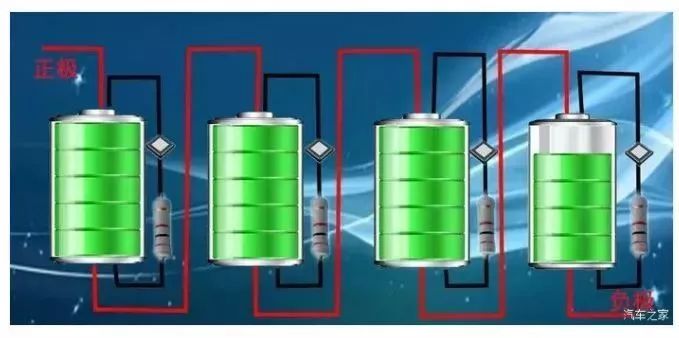 还记得手电筒有什么要求么?对了,新旧电池不能混用,也就是说有电和没电的电池不能混用。回到唐和秦的电池组,上边是个示意图,选取了几个电芯。正常情况下,他们的存电量应该是完全一样的,一起充满,一起放空,如果一直这样循环,那么就不会产生文章之初的各种问题了。