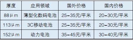 因此目前市场上常规铝塑膜的厚度一般分为88μm、113μm、153μm三档,其中86μm和113μm两档用于消费类电子产品,153μm用于新能源车动力锂电池和工业储能领域。