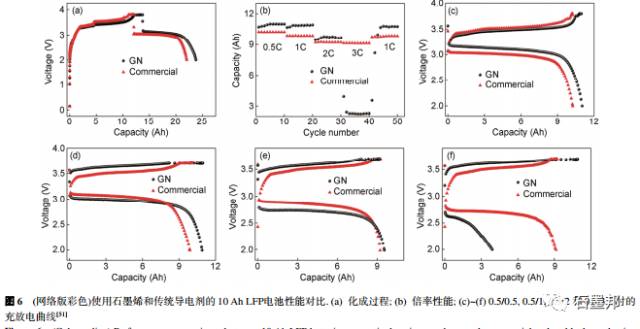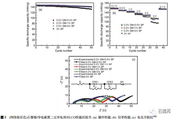 (1) 电子电导率高, 使用很少量的石墨烯就可以有效降低电池内部的欧姆极化;