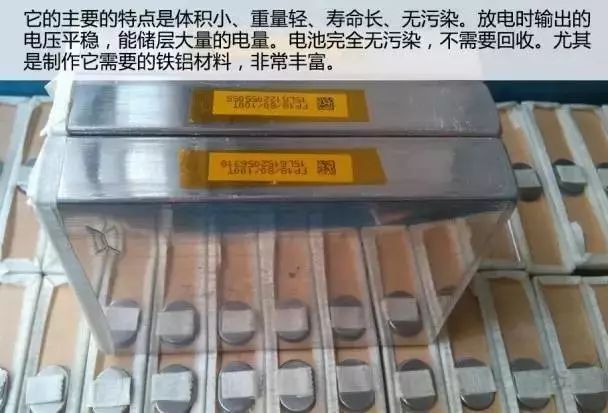 它的主要的特点是体积小、重量轻、寿命长、无污染。放电时输出的电压平稳,能储层大量的电量。电池完全无污染,不需要回收。尤其是制作它需要的铁铝材料,非常丰富。