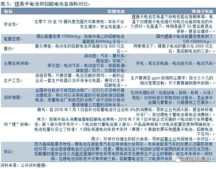 综合来说,因为高续航需求特性,锂电池在新能源汽车应用领域大放异彩,未来新能源汽车的发展以及国家政策的引导一定会促进锂电池行业的发展。但是,锂电池在生产和回收过程中高昂的成本依旧无法忽视,铅酸蓄的高安全性以及高资源循环特性所带来的低成本也更受生产企业的青睐,故在未来很长一段时间,在锂电池回收技术没有突破之前,铅酸蓄电池在二次电源市场依旧地位稳固难以撼动。