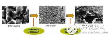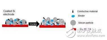 另外,完整的表面包覆非常重要,防止硅和电解液接触,产生厚的SEI膜的消耗。微观结构的设计也很重要,要来维持在循环过程中电子的接触,离子的通道,体积的膨胀。