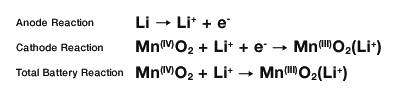 正极(正极)活性物质采用经过特殊处理的二氧化锰(MnO2),负极(负极)活性物质采用高电压、高活性的锂金属。此外,电解液中的有机溶媒使用能够溶解锂盐的物质,尽可能易于高电压、高能源的产生。