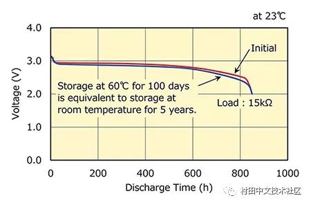如图所示为60℃100天(相当于常温常湿状态下5年)储存后的放电特性。