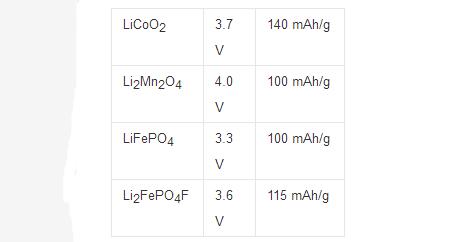 正极材料:可选的正极材料很多,主流产品多采用锂铁磷酸盐。不同的正极材料对照: