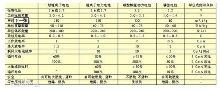 磷酸铁锂动力电池主要性能列于表1。为了与其他可充电电池的相比较,也在表中列出其他种类可充电电池性能。这里要说明的是,不同工厂生产的磷酸铁锂动力电池在各项性能参数上会有一些差别;另外,有一些电池性能未列入,如电池内阻、自放电率、充放电温度等。