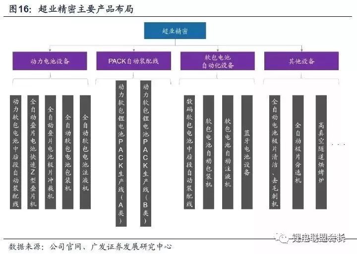 软包电池相关中后端锂电设备巨大的市场空间吸引着锂电设备龙头加速布局软包设备领域。2018年3月13日,璞泰来发布重大资产重组停牌进展公告称,公司本次重大资产重组拟收购的标的资产为东莞市超业精密设备有限公司(下称“超业精密”),初步方案为拟发行股份及支付现金收购超业精密100%股权。璞泰来通过新设、兼并购等方式,不断完善在锂电池关键材料和设备领域的产业链布局。超业精密起步于十多年前的半自动单机,成名于极耳焊接机、冲壳包装机和注液机。在锂电池行业需求快速提升的背景下。近年来公司软包装电池设备产品早已拓延到模切、叠片、焊接、包装、干燥、注液和DEGAS等核心工艺设备,并具备在单品牌下整体提供全套中段和后段设备的供应和服务能力。