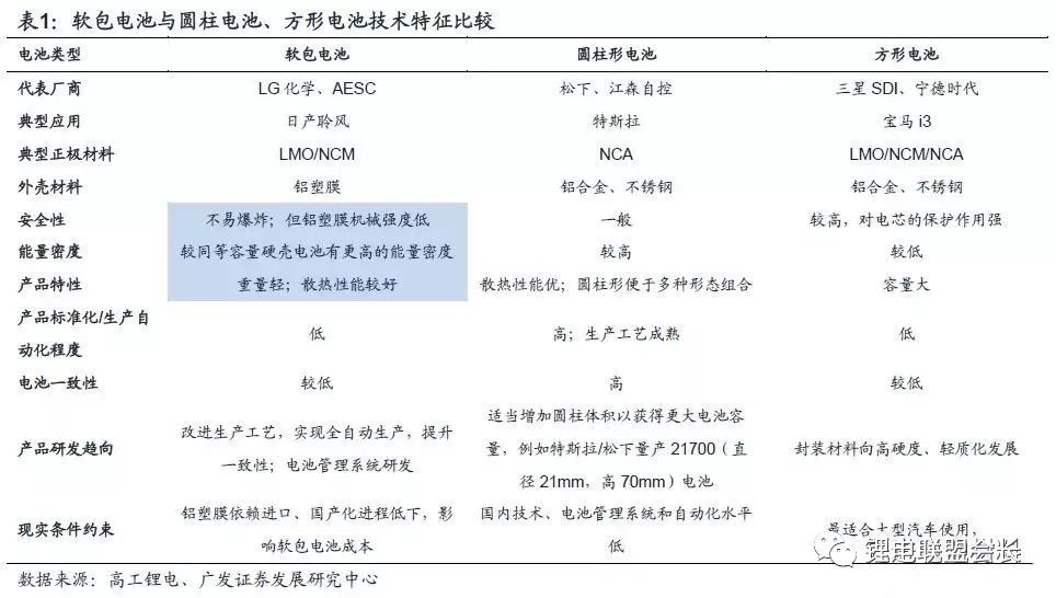 由于特定的包装材料与结构不同,三种电池各在技术性能方面有所差异,各自具备一定的优劣势。
