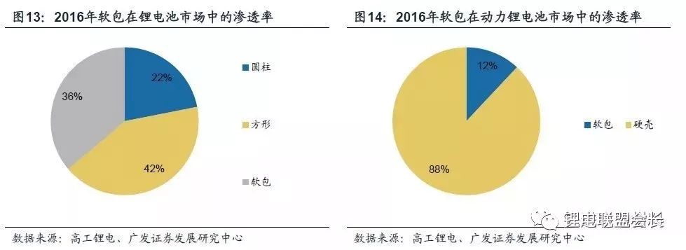 高工锂电统计数据显示,2016年我国圆柱、方形、软包锂电池产量分别为13.92GWh、26.64GWh、22.99GWh,软包在锂电全行业的渗透率已经达36%,而我国动力电池产量达30.5GWh,其中软包电池占比12%,处于相对较低水准。
