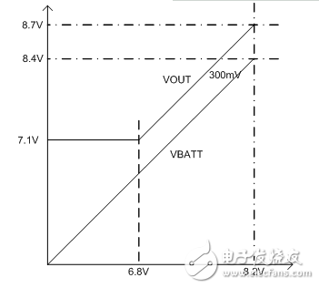 2)如果VBATT<6.8V,VOUT则会固定在7.1V,为电池提供充电驱动能力。