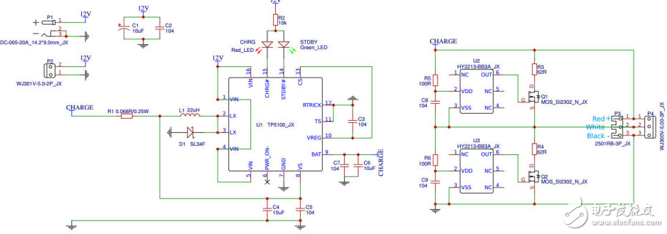因此要设计一个充电器,保证单节锂电池不会超过4.2V,充电输入端,12V的电源。