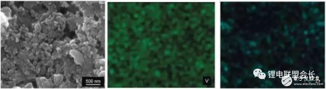 通过对三元材料进行EDS分析,就可以得出三种元素的质量比,从而判断出材料的种类。此外,EDS技术也可以进行元素的面分布分析,用扫描观察装置,使电子束在试样上做二维扫描,测量其特征X射线的强度,使与这个强度对应的亮度变化与扫描信号同步在阴极射线管CRT上显示出来,就得到特征X射线强度的二维分布的像,现在在材料的掺杂、包覆均一性的研究上得到了广泛的应用。