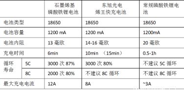 表1本石墨烯基磷酸铁锂电池与同类型其他技术的对比