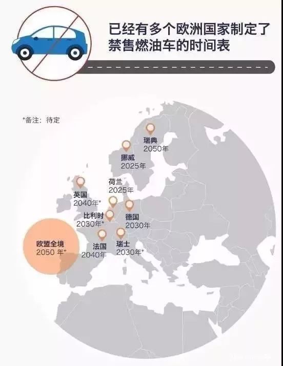 包括荷兰、德国、法国和英国等多个国家公布禁售燃油车时间表,最为激进的是荷兰,其计划禁售时间是2025年。工信部副部长辛国斌9月9日在2017中国汽车产业发展(泰达)国际论坛上透露,中国已经开始研究制定禁售传统燃油汽车时间表。