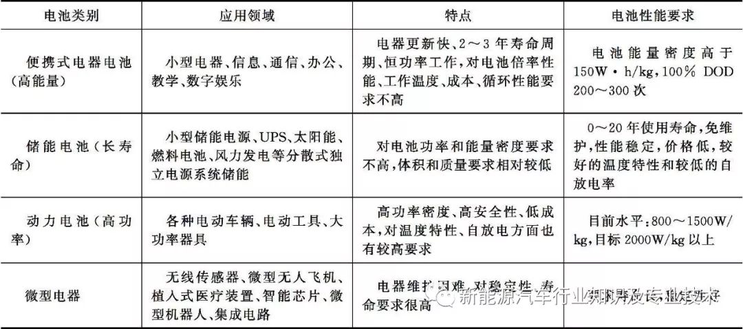 锂离子电池的使用类别